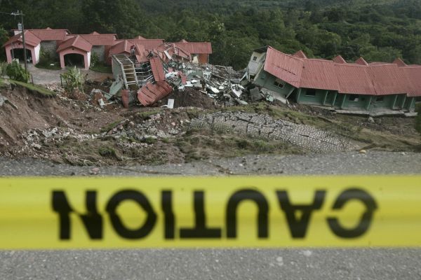 O hotel foi destruído por um deslizamento de terra na periferia de Tegucigalpa, em Honduras. Pelo menos 25 pessoas morreram e milhares foram evacuadas do país após dias de chuvas torrenciais, deslizamentos e enchentes.
