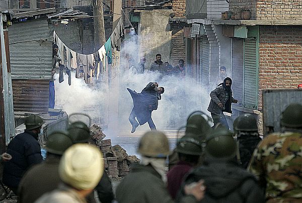 Manifestantes jogaram pedaços de tijolos, pedras e bombas de gás contra a polícia indiana durante protesto realizado ontem contra o assassinato de um estudante de 16 anos na região da Caxemira supostamente morto por policiais.