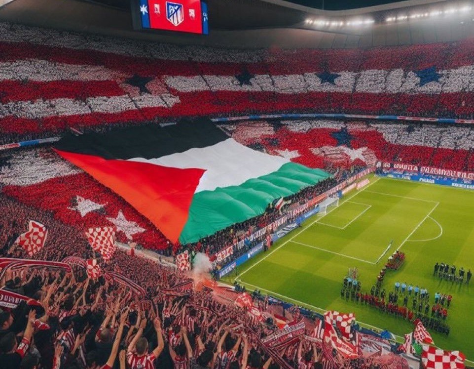 Existe ainda uma imagem de torcedores do Atlético de Madrid, clube de futebol da Espanha, levantando uma bandeira da Palestina no meio de um jogo em seu estádio no mesmo dia em que ocorreram os ataques terroristas em Israel. Conforme explicou o professor Farid à France 24, essa imagem também foi desenvolvida por uma IA.