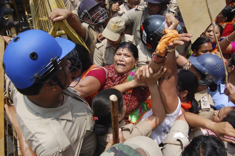 Em Lucknow, os manifestantes protestavam do lado de fora do escritório do ministro-chefe do estado de Uttar Pradesh, Akhilesh Yadav, exigindo que ele reprima os casos de estupros e os ataques contra mulheres e meninas.