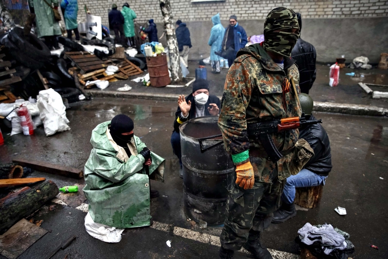 Em Slaviansk, separatistas tomaram edifícios da polícia e do Serviço de Segurança, além de fazerem barricadas ao redor da cidade, a cerca de 150 km da fronteira russa.