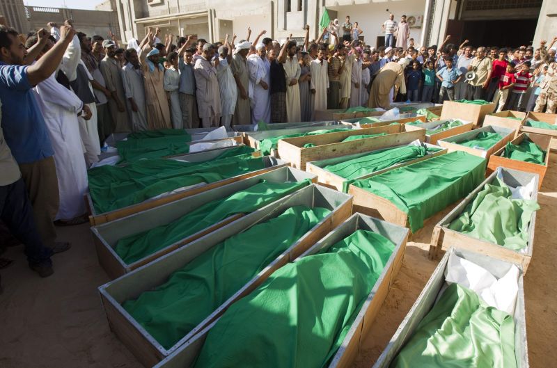 O governo líbio decretou três dias de luto oficial pelas vítimas, segundo a tevê estatal. Jornalistas que foram levados ao hospital de Zlitan por funcionários do governo líbio contaram 20 cadáveres em sacos numa sala, alguns deles amontoados.