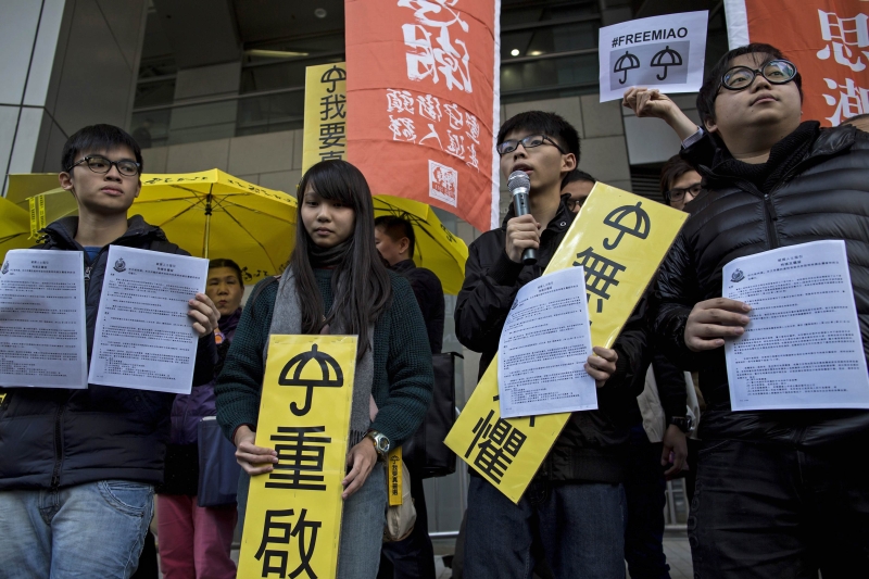 Quatro líderes do grupo estudantil Scholarism, Joshua Wong, Oscar Lai, Agnes Chow e Derek Lam, foram acusados e liberados depois de se apresentarem à polícia, de acordo com a página oficial do Scholarism no Facebook. Os quatro se recusaram a acatar o pagamento de fiança.