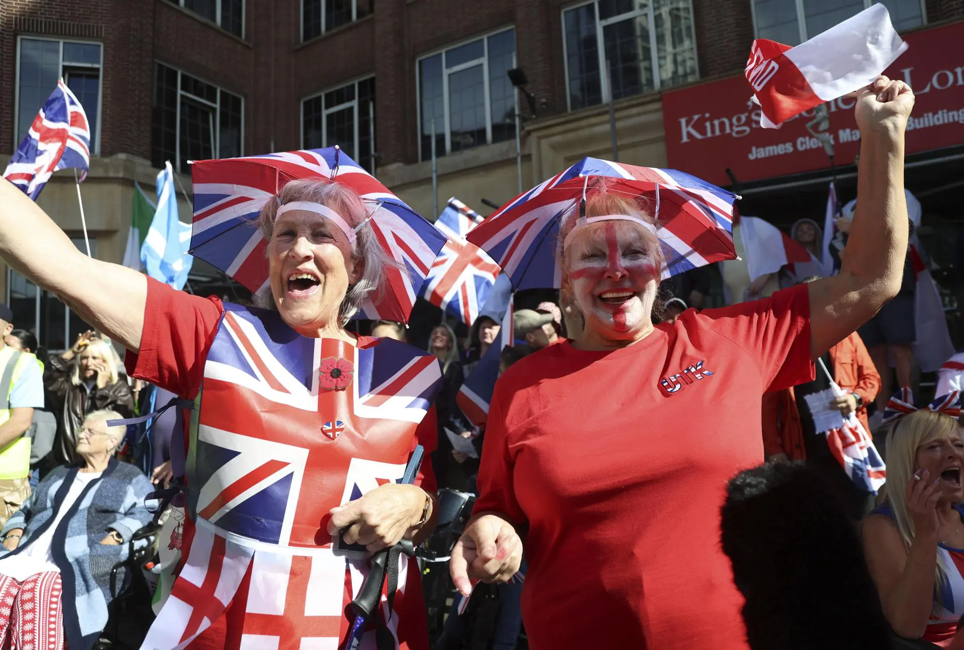 Com o lema “Unite the Kingdom” (Unir o Reino Unido, em inglês), os manifestantes caminharam pela capital inglesa carregando bandeiras britânicas e a bandeira inglesa com a cruz de São Jorge, exigindo que o governo trabalhista inglês endureça a fiscalização nas fronteiras do país, entoando cânticos como "parem os barcos" e "devolvam-nos para casa".