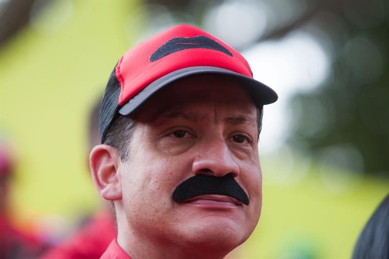 "Além de ser bom para jogar beisebol, esse boné também vem com um bigode", disse Maduro antes de descolar o adereço, aplicando-o sobre seu bigode, e conquistando aplausos dos presentes. "Essa é uma invenção de Darío Vivas [deputado do Partido Socialista Unido, partido do presidente] e Delcy [Rodríguez, ministra de Comunicação]. É o boné do bigode da revolução."