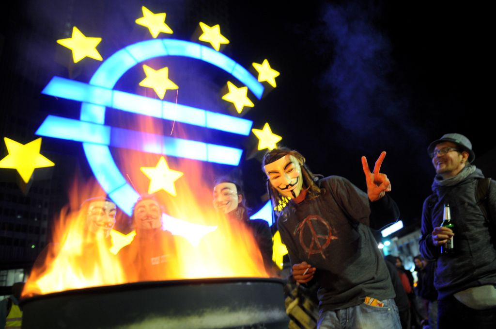 Cerca de 200 pessoas acamparam em frente ao edifício do Banco Central Europeu (BCE), em Frankfurt, durante a madrugada deste domingo (16), enquanto manifestantes anticapitalismo planejaram e realizaram diversos protestos em outras grandes cidades.