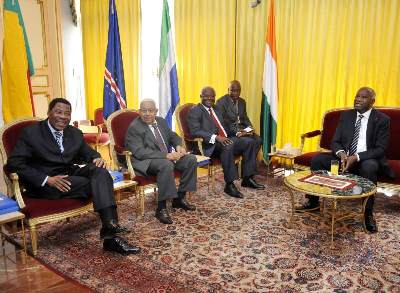 Boni Yayi, do Benin, Ernest Bai Koroma, de Serra Leoa, e Pedro Pires, de Cabo Verde, entregar em Abidjã um pedido assinado pelo bloco dos países da África Ocidental, o Ecowas, pela renúncia de Gbagbo. Caso recusasse, enfrentaria uma intervenção militar.