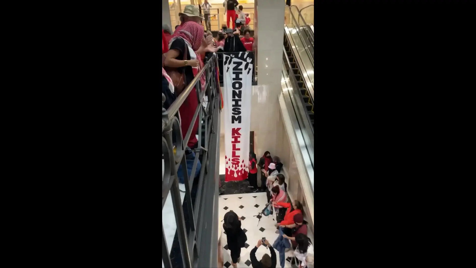 Manifestantes contra Israel invadiram nesta segunda-feira (3) o saguão de um prédio de São Francisco, nos Estados Unidos, onde está localizado um consulado do país.