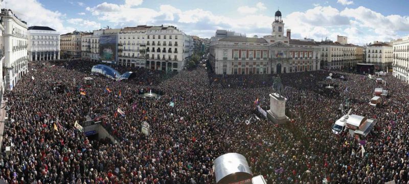 Dezenas de milhares de pessoas marcharam pela capital da Espanha neste sábado para expressar seu apoio ao Partido Podemos, que tem como objetivo replicar em seu território a recente vitória dos radicais de esquerda do Syriza na Grécia.