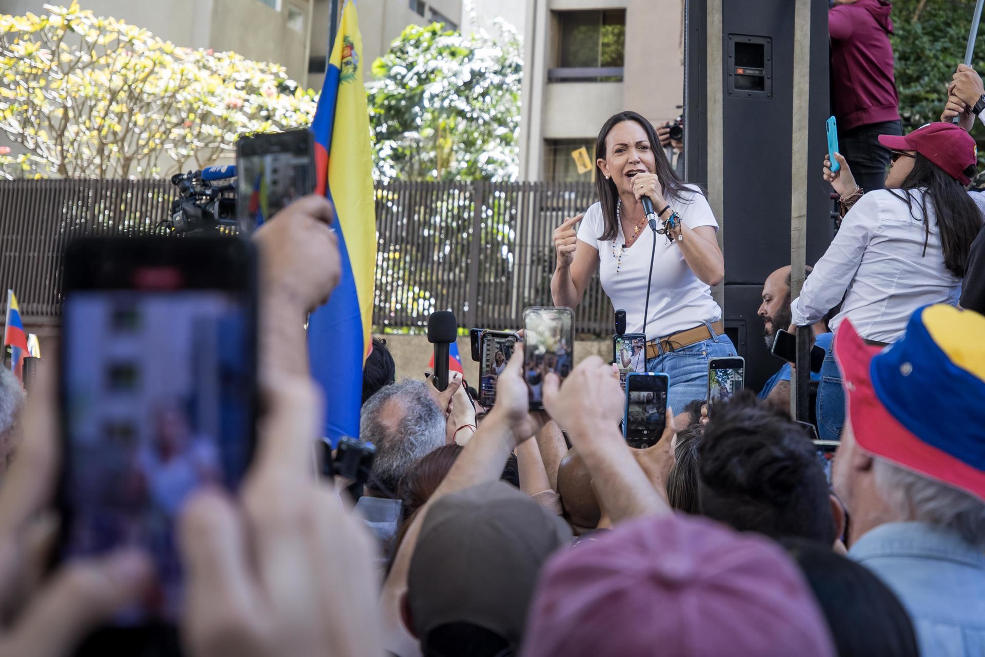 “Exigimos uma reação firme de todos os atores nacionais e internacionais que apoiam uma verdadeira eleição presidencial na Venezuela. Nós continuaremos percorrendo todo o nosso país na construção de mais e mais força e organização cidadã para alcançar a vitória eleitoral este ano”, acrescentou a opositora.