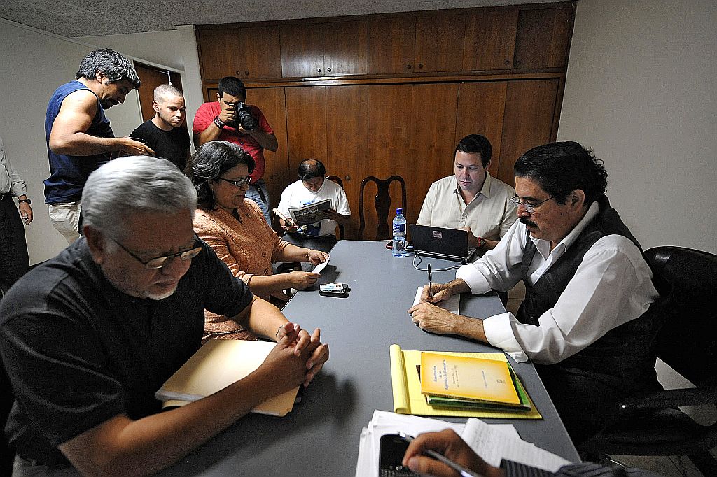 Em nota, os representantes do governo de facto na negociação de Guaymuras, como foi chamado o diálogo entre as duas facções hondurenhas, anunciaram que não aceitariam a proposta de restituição do texto. A revelação foi um balde de água fria no campo zelaysta e em setores do Estado que vinham mostrando otimismo.