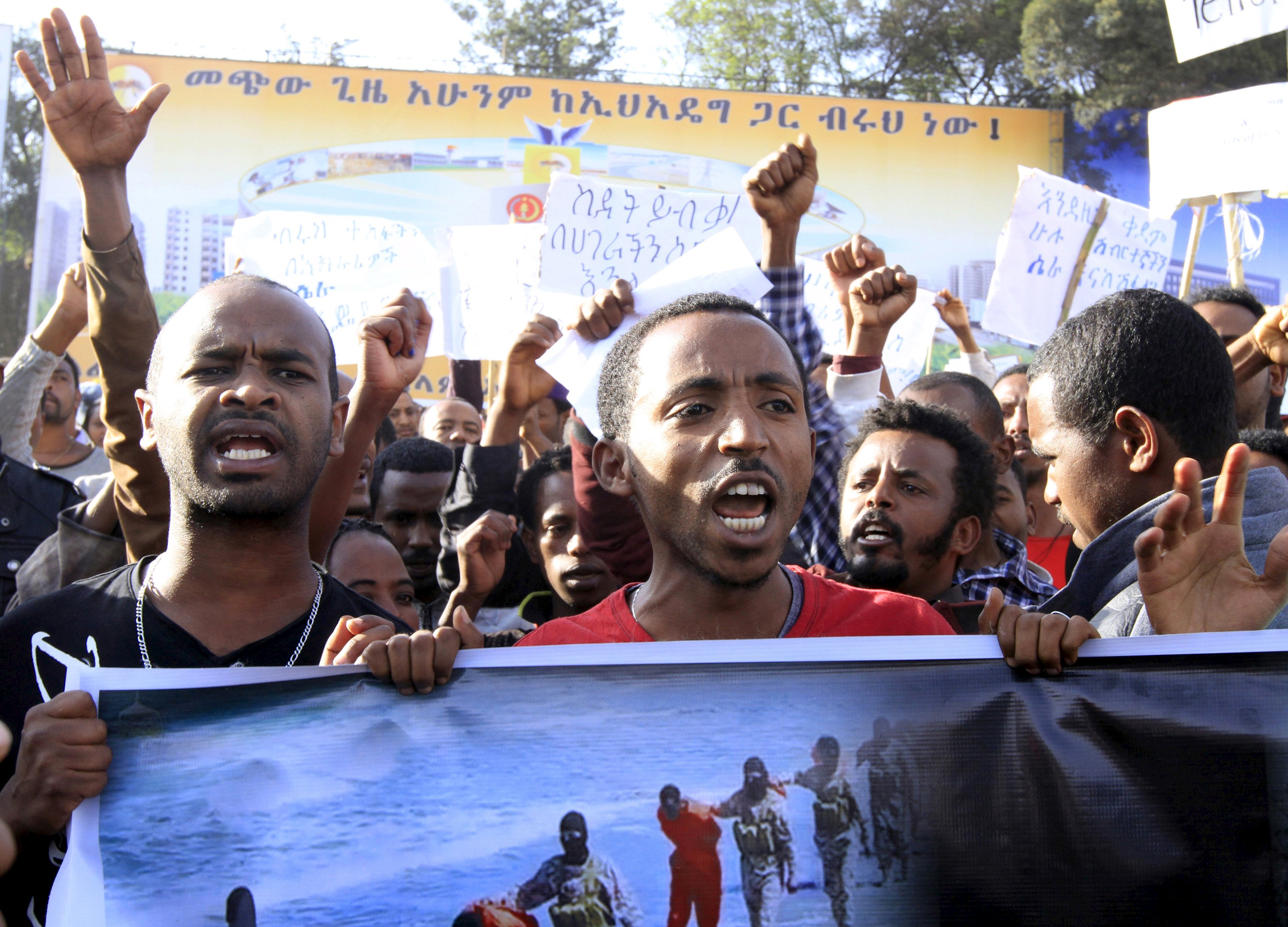As forças de segurança trataram de dispersar os manifestantes após o discurso do primeiro-ministro, Hailemariam Desalegn, no qual condenou os atos do Estado Islâmico e disse que o governo fará o que for necessário “para castigar o grupo terrorista”, mas sempre em colaboração com seus aliados globais.