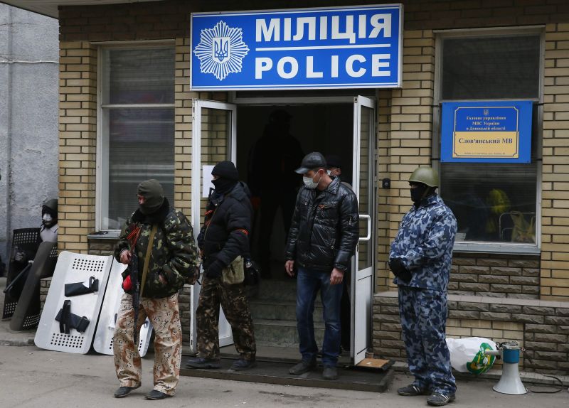 Ao menos 20 homens armados com pistolas e rifles ocuparam a delegacia de polícia e os prédios dos serviços de segurança em Slaviansk, a cerca de 150 km da fronteira com a Rússia.