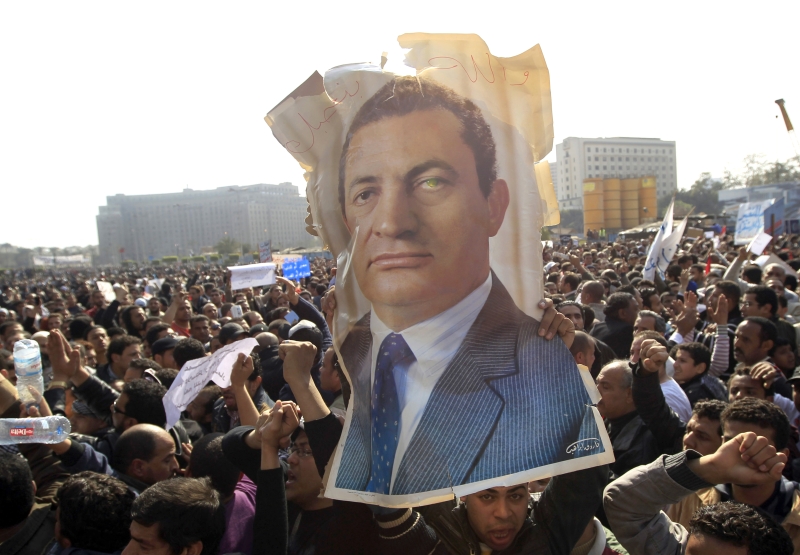 11.fev.2011 Uma semana após batalha campal entre manifestantes pró e contra governo na Praça Tahrir, no Cairo, o ditador Hosni Mubarak, que governava desde 1981, renuncia e passa o poder ao Exército.