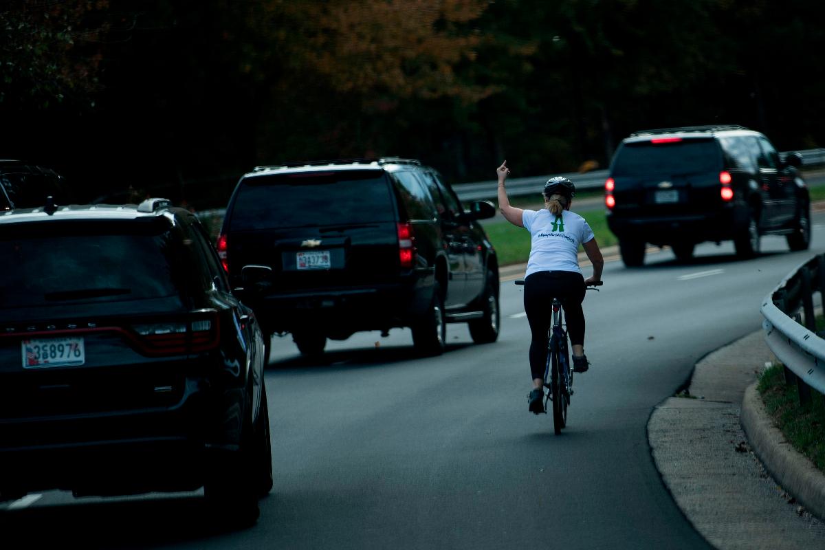 Juli Briskman ousou desafiar o presidente norte-americano Donald Trump – e acabou demitida por causa disso. A mulher de 50 anos não pensou duas vezes em levantar o dedo médio da mão durante a passagem da comitiva presidencial por uma rodovia dos EUA no sábado (28) – Juli pedalava sua bicicleta tranquilamente quando foi surpreendida pelo comboio de carros.