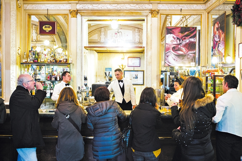 Entretanto, em Nápoles, com sua rica diversidade de bairros, as cafeterias funcionam mais como um ponto de encontro para todos: políticos, famílias inteiras, artistas de rua, executivos e mendigos.