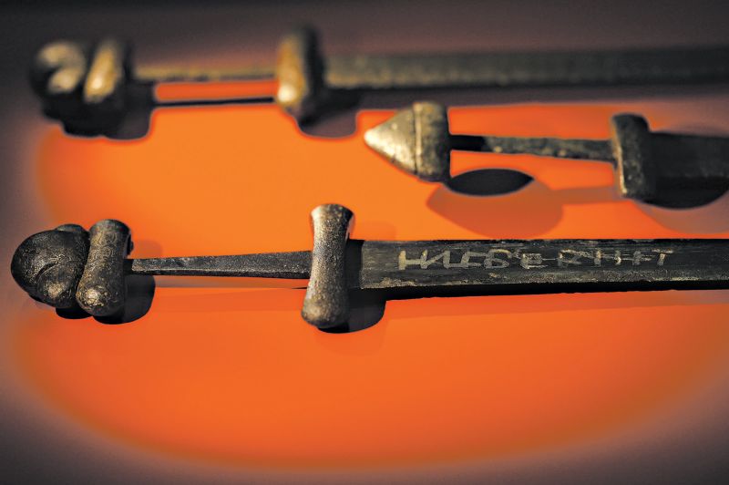 Quem vem com a intenção de se encher de horror pelos vikings encontra muita coisa para alimentar a imaginação: as cabeças de ferro dos machados de combate, outrora brandidos com uma mão para mutilar e decapitar; as espadas de dois gumes, ricamente decoradas; e os restos de lanças com o comprimento de um corpo humano, arma preferida dos vikings.