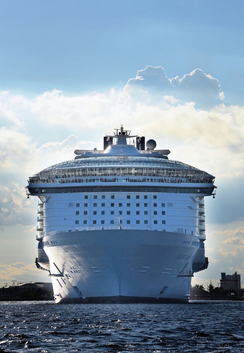 O maior navio atual, o Allure of the Seas, da Royal Caribbean, tem 2.706 cabines e pode acomodar cerca de 6.300 passageiros e 2.394 tripulantes o equivalente a uma pequena cidade.