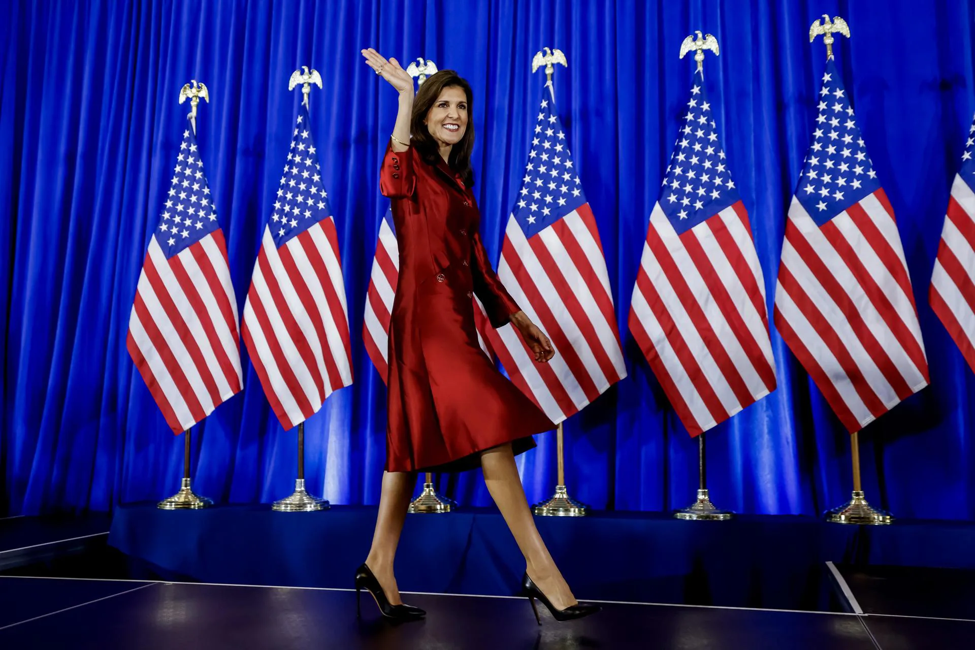 Nas primárias republicanas da "Super Terça", ela ganhou apenas 43 dos delegados republicanos em disputa, enquanto Trump ficou com 764. Antes das primárias da Carolina do Sul em fevereiro, Haley prometeu permanecer na corrida até pelo menos esta data. Segundo ela, continuaria na corrida pela indicação “até a última pessoa votar", porque acredita em "uma América melhor e em um futuro melhor para os nossos filhos”.