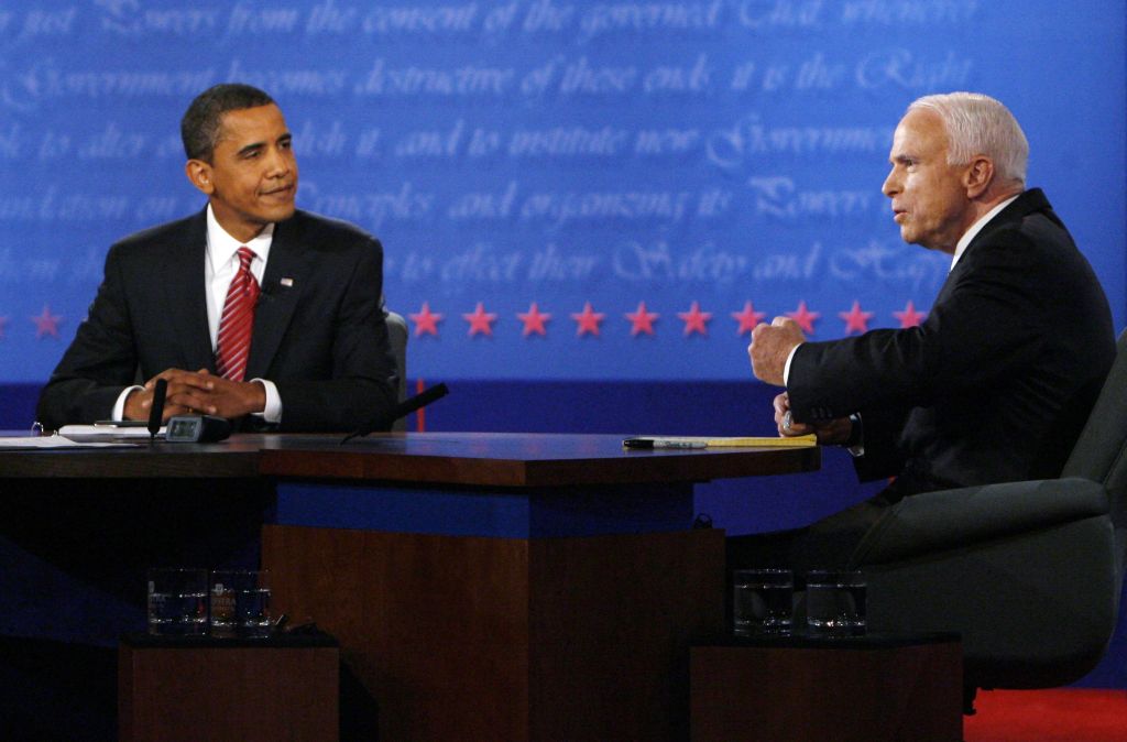 Em queda nas pesquisas, McCain tentou se afastar da atual administração Bush. Em um de seus melhores momentos, disse: "senador Obama, eu não sou o presidente George W. Bush. Se você queria concorrer com o presidente Bush, deveria ter feito isso há quatro anos".