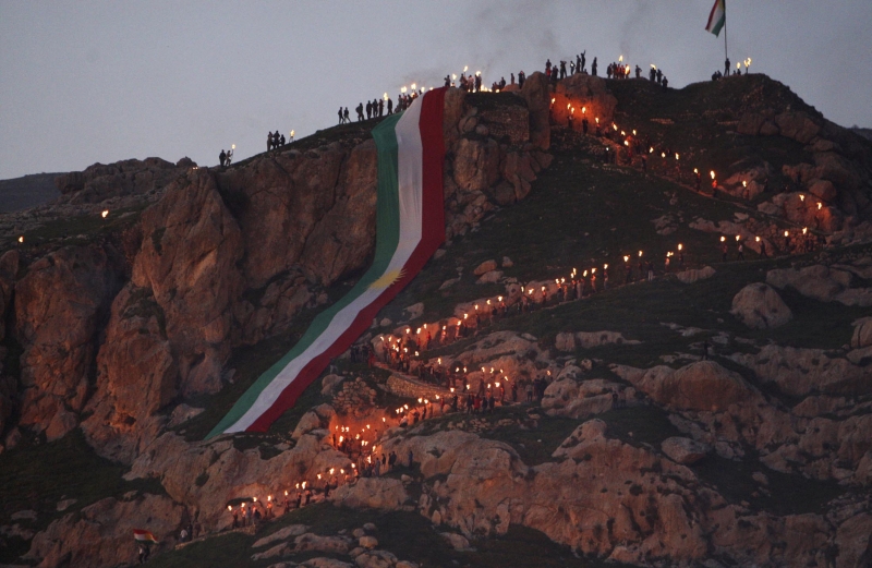O ano-novo do calendário persa, chamado de Noruz, foi comemorado ontem pelos curdos no Iraque. Na foto, tirada em Dohuk, capital da província de Dahuk, curdos carregam tochas montanha acima, decorada com uma bandeira da região autônoma do Curdistão. O Noruz é comemorado também no Azerbaijão, na Turquia, no Irã, no Afeganistão e no Tajiquistão. O ano-novo marca o primeiro dia da primavera.