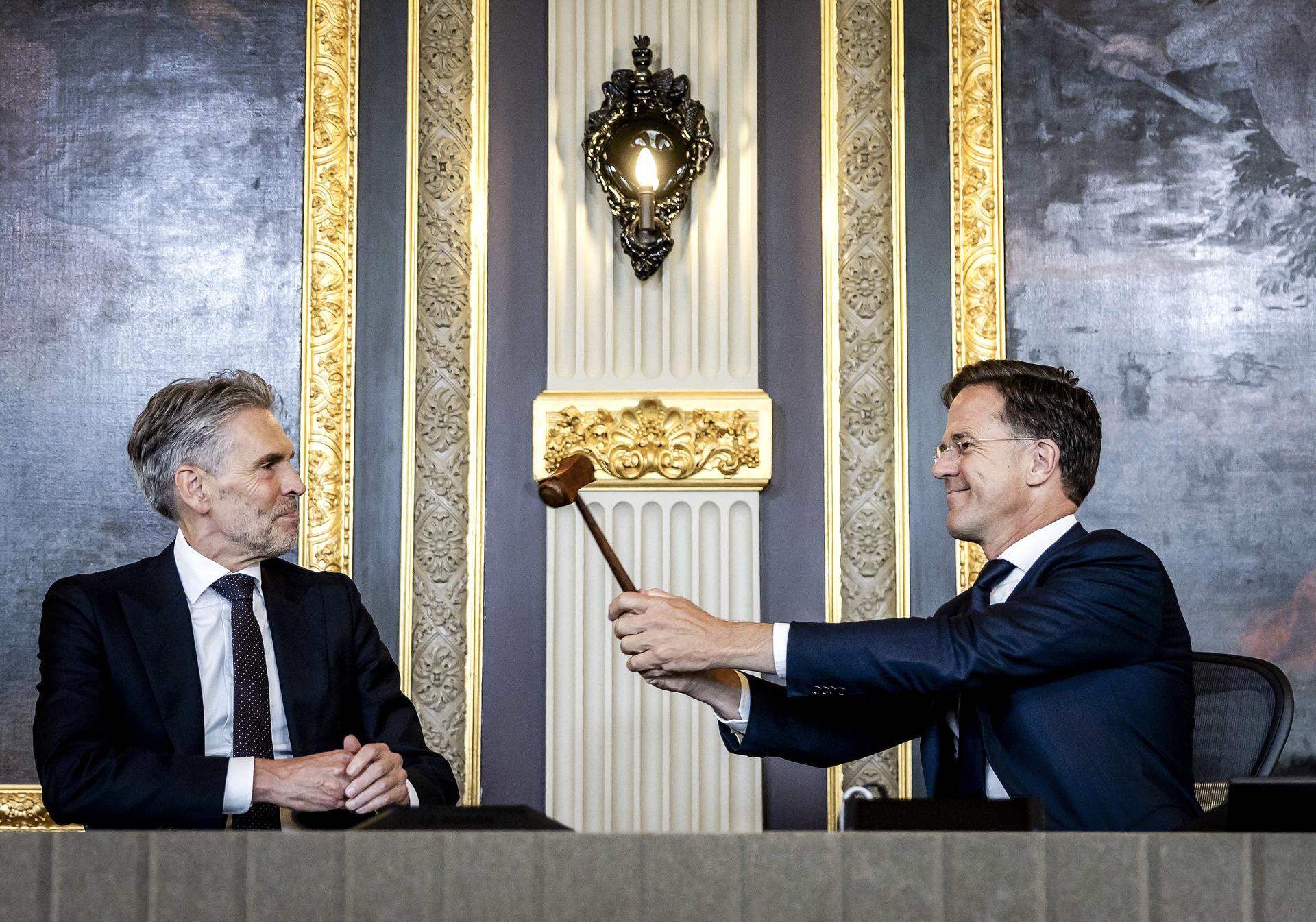 Dentro do Palácio Huis ten Bosch, em Haia, ministros e secretários de Estado desfilaram um por um diante do rei Willem-Alexander para prestar juramento em seus novos cargos, antes de subir as escadas para tirar a tradicional foto do gabinete com o monarca.