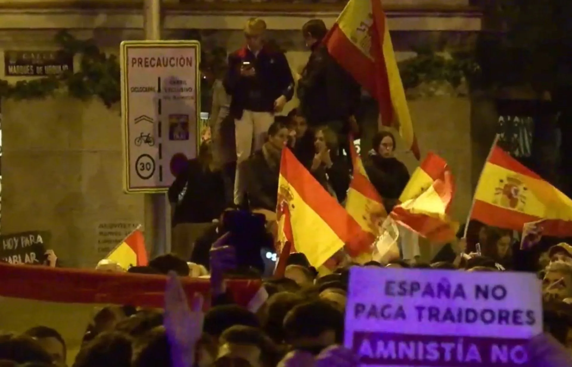 No sétimo dia de protestos contra a anistia e depois da divulgação do acordo entre o governista PSOE e o partido catalão pró-independência Junts, visando a efetivação de Pedro Sánchez como presidente do Governo - ele ocupa interinamente o posto -, a manifestação foi a maior das realizadas até agora, com cerca de 8 mil participantes, de acordo com a Delegação do Governo em Madri.