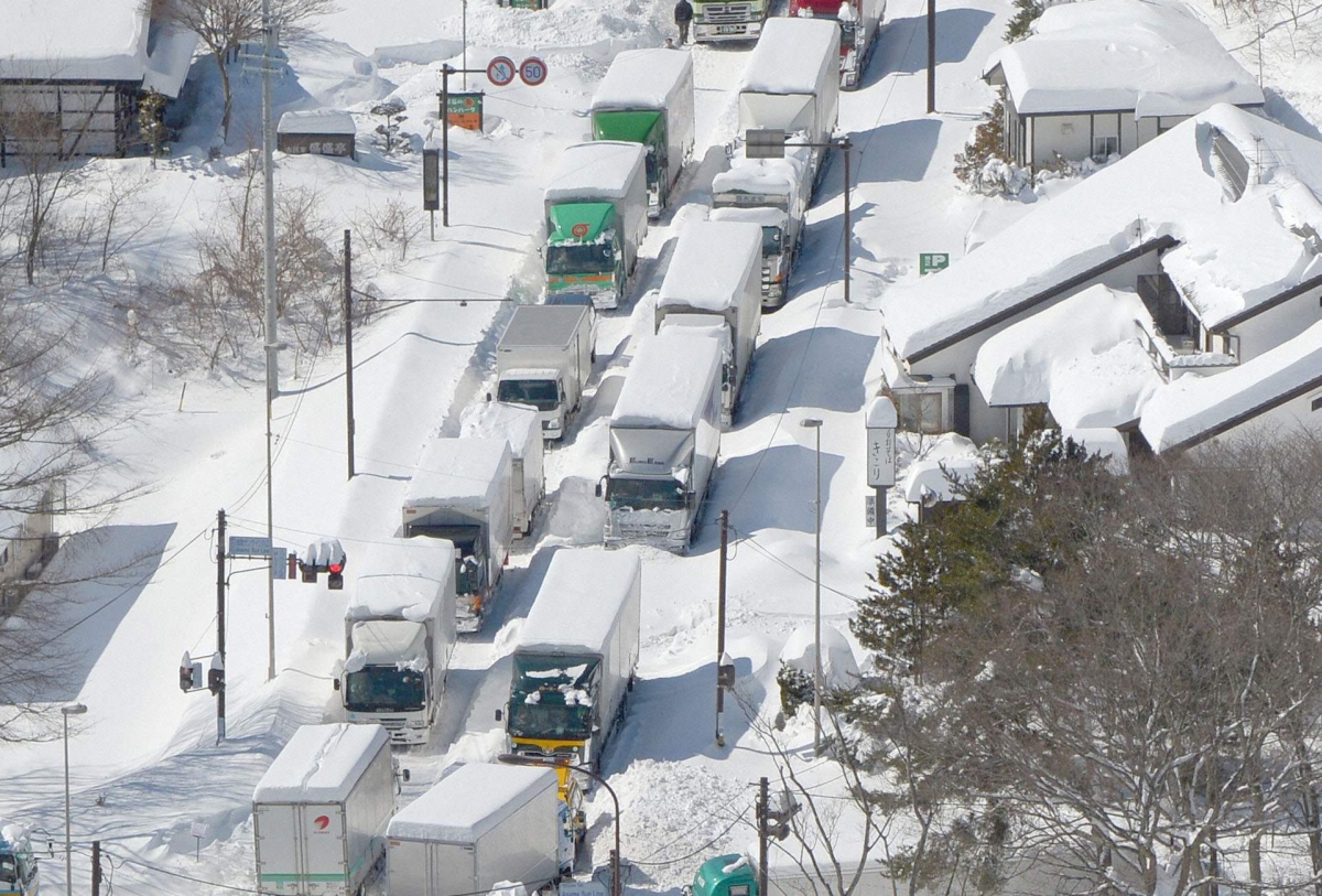 Em Kawasaki, a oeste de Tóquio, um trem bateu em outro depois que a neve prejudicou seu sistema de freios, deixando 19 passageiros feridos. O tráfego nas principais estradas de Tóquio também ficou prejudicado.