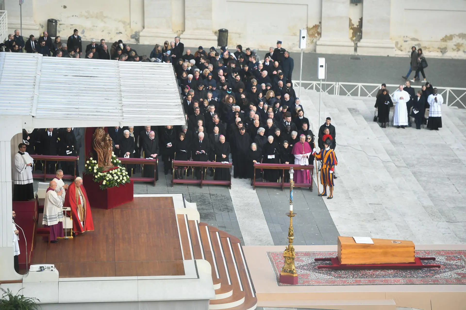 O papa Francisco preside a cerimônia fúnebre do papa emérito Bento XVI na Praça São Pedro, na Cidade do Vaticano, em 5 de janeiro de 2023. Bento XVI faleceu em 31 de dezembro de 2022, aos 95 anos, em sua residência no Vaticano. Foto: EFE/EPA/Radek Pietruszka