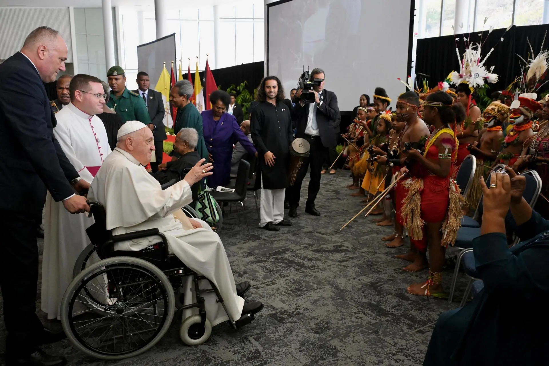 O papa em Papua-Nova Guiné, na Oceania, em setembro de 2024, durante sua extensa viagem de 32 mil km. Foto: EFE/EPA/Alessandro Di Meo
