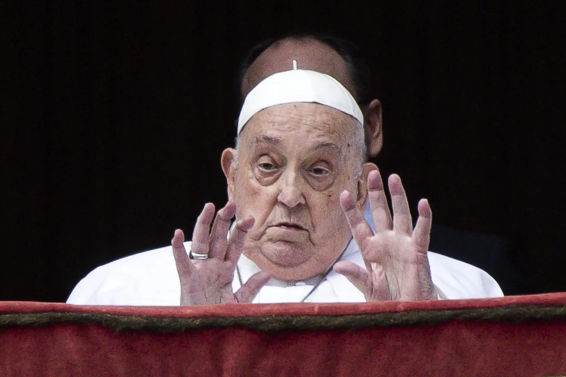 O papa Francisco aparece no balcão central da Basílica de São Pedro para a bênção apostólica Urbi et Orbi, após a missa do Domingo de Páscoa, em 20 de abril de 2025. “Queridos irmãos e irmãs, Feliz Páscoa”, disse o papa, com voz cansada. A mensagem escrita por ele para a ocasião foi lida pelo mestre das Celebrações Litúrgicas Pontifícias, monsenhor Diego Ravelli. EFE/ANGELO CARCONI