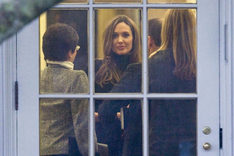 Na reunião, o presidente "ouviu Jolie sobre o trabalho que realiza de luta contra as atrocidades em massa e a violência sexual que atinge especificamente as mulheres", acrescentou.