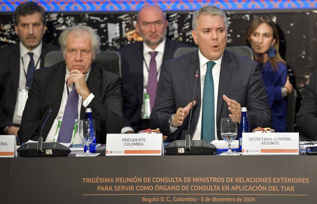 Durante a reunião, o presidente da Colômbia, Iván Duque, pediu maior articulação entre os países para aplicar sanções ao regime de Maduro.