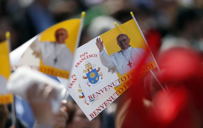Após assistir ao ato de dedicatória a João Paulo II, em que foi inaugurada uma placa com o nome do pontífice polonês abençoada por Francisco , o papa foi à basílica em seu papamóvel. No percurso, foi saudado por uma multidão que lançava flores e pedia a ele que abençoasse as crianças.