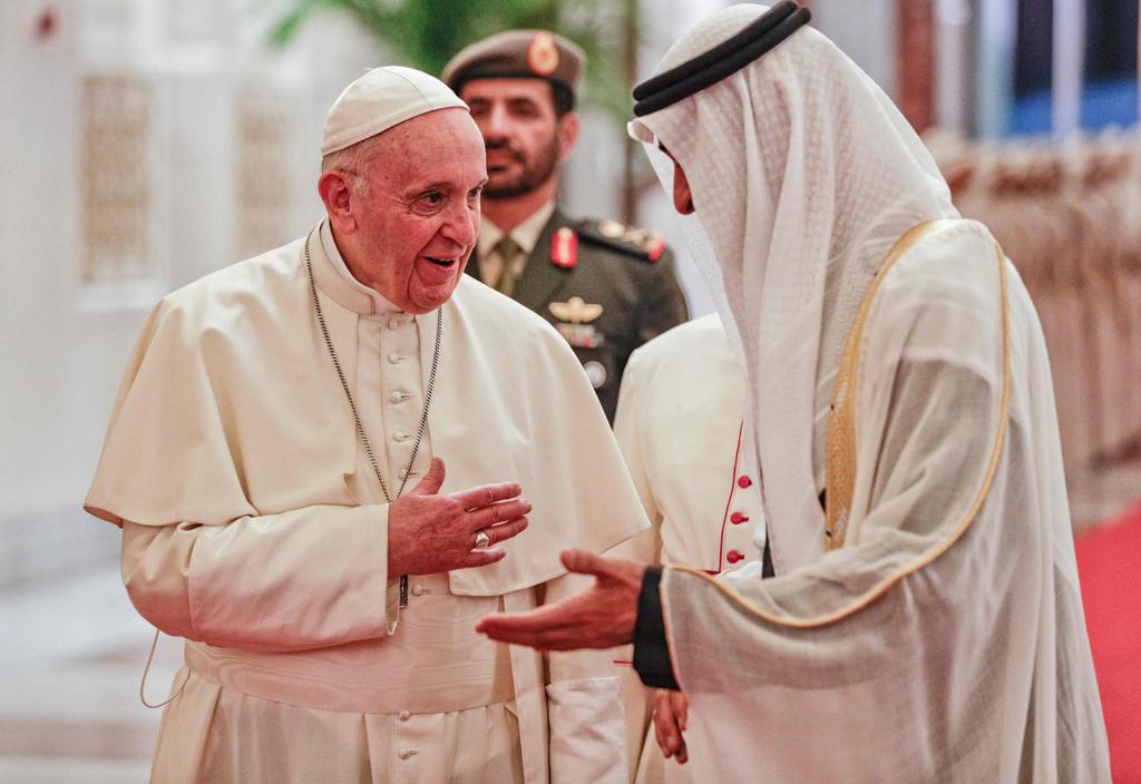 Francisco viaja a Abu Dabi para participar em uma conferência sobre diálogo inter-religioso patrocinada pelo Conselho Muçulmano de Anciãos, um grupo sediado nos Emirados Árabes contrário ao fanatismo religioso e para a promoção de uma forma moderada de Islã. É uma iniciativa do xeque Ahmed el-Tayeb, grande imã de Al-Azhar, o respeitado centro egípcio de aprendizagem sobre o islamismo sunita que tem mil anos e é frequentado por clérigos e estudiosos de todo o mundo.