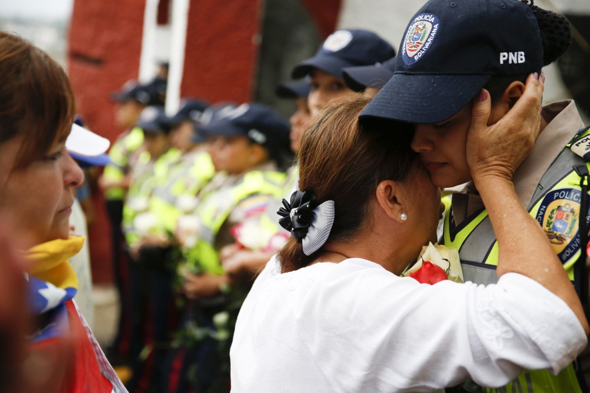 Mulheres partidárias da oposição, usando roupas brancas, fizeram uma passeata silenciosa desde um bairro no oeste de Caracas até uma base da Guarda Nacional nas imediações, carregando fotos de vítimas da suposta brutalidade de forças de segurança.