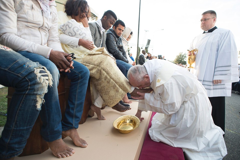 O papa Francisco lavou e beijou os pés de 12 pessoas, a maioria refugiados de diversas religiões, no tradicional ritual de lava-pés, nesta quinta-feira (24). Três dos que tiveram seus pés lavados são muçulmanos. Durante o evento, que é realizado todos os anos logo antes da Páscoa, o pontífice pediu a união de membros de todas as religiões.