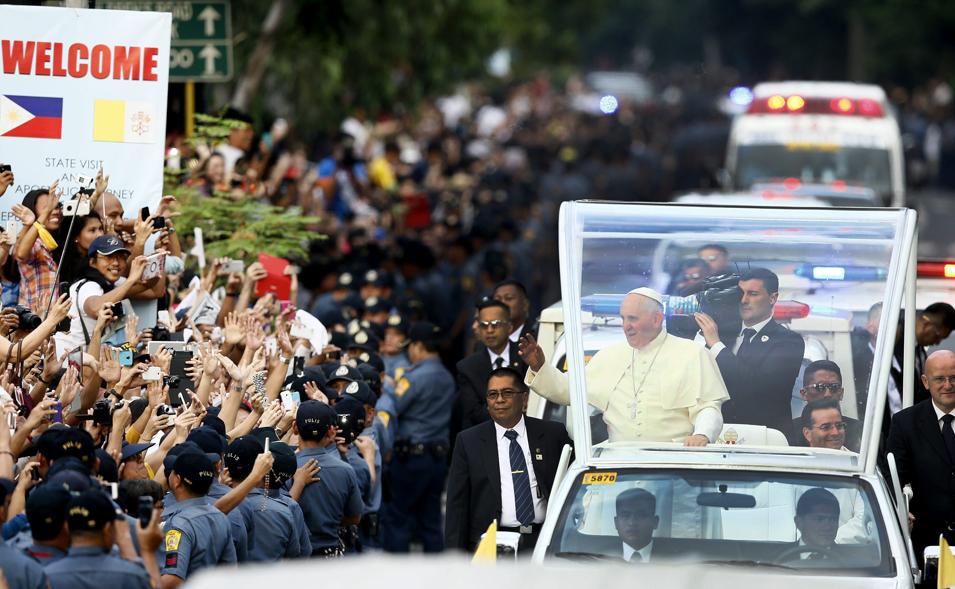 As Filipinas armaram a maior operação de segurança da sua história, com cerca de 50 mil policiais e soldados mobilizados para proteger o papa. O carro de Francisco era acompanhado por veículos da polícia, o que algumas vezes impedia a multidão de vê-lo de perto.