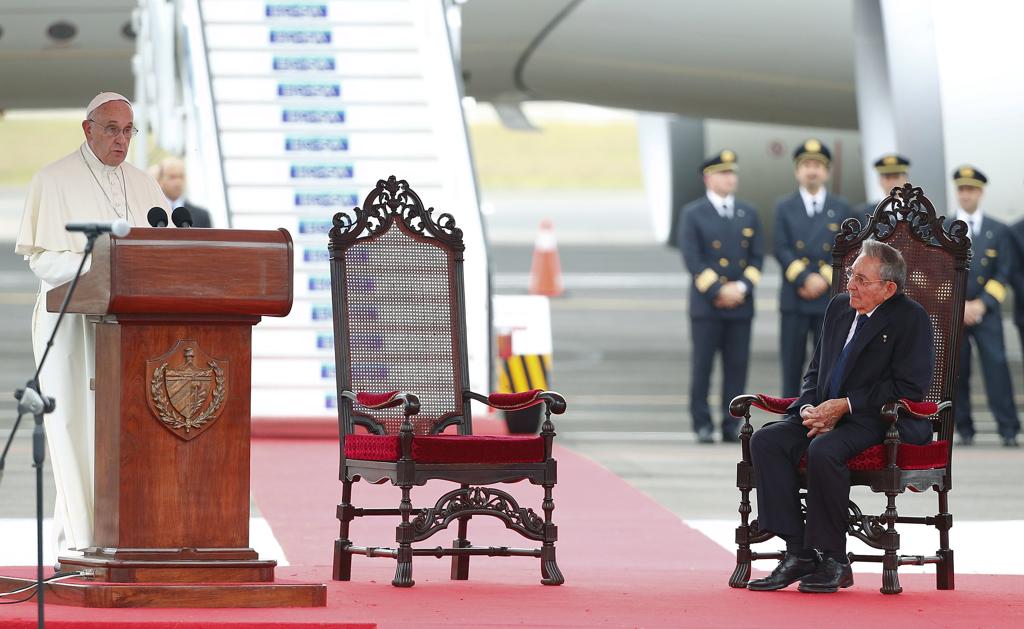 No local, ele foi recebido com honras de chefe de Estado pelo ditador Raúl Castro e o arcebispo de Havana, cardeal Jaime Ortega y Alamino. Castro agradeceu o pontífice pela visita e citou alguns dos feitos do regime em seu discurso.