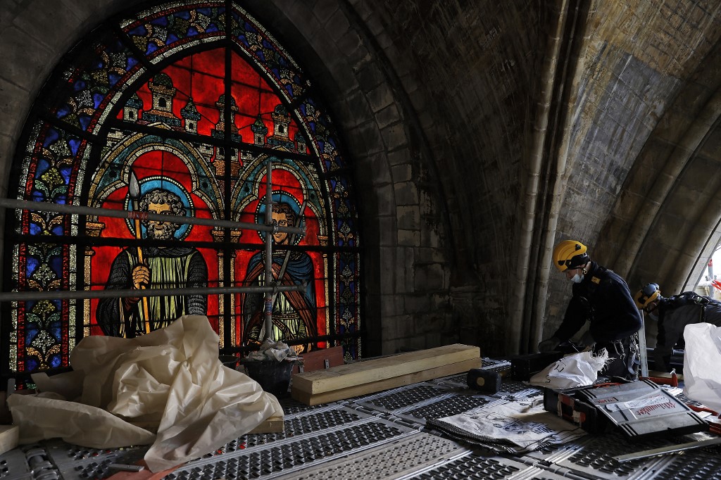 Até agora, o esforço de engenheiros e arquitetos foi para estabilizar a estrutura da catedral e limpar os elementos decorativos. Na época do incêndio, a Notre-Dame já estava sendo restaurada e havia dentro dela muitos andaimes de metal. Com o fogo, muita coisa derreteu, transformando a nave da igreja em uma floresta de ferro retorcido.