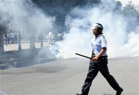 Os policiais, concentrados em grande número em frente do Ministério do Interior, lançaram gás lacrimogêneo e bateram com cassetetes em algumas pessoas, forçando-as a se dispersarem.