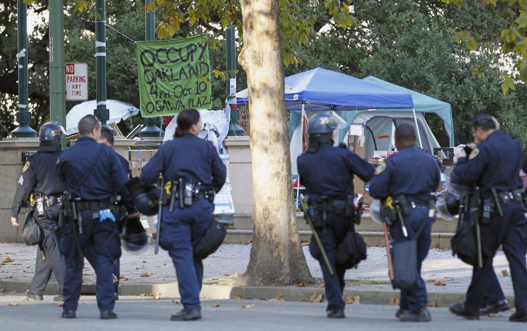 Os manifestantes de Oakland, um dos maiores acampamentos do país e um dos que registrou mais conflitos, haviam vencido as tentativas de expulsão ao longo do fim de semana e ignoraram o aviso da Prefeitura, que ameaçava prender todos aqueles que passassem a noite na Frank Ogawa Plaza.
