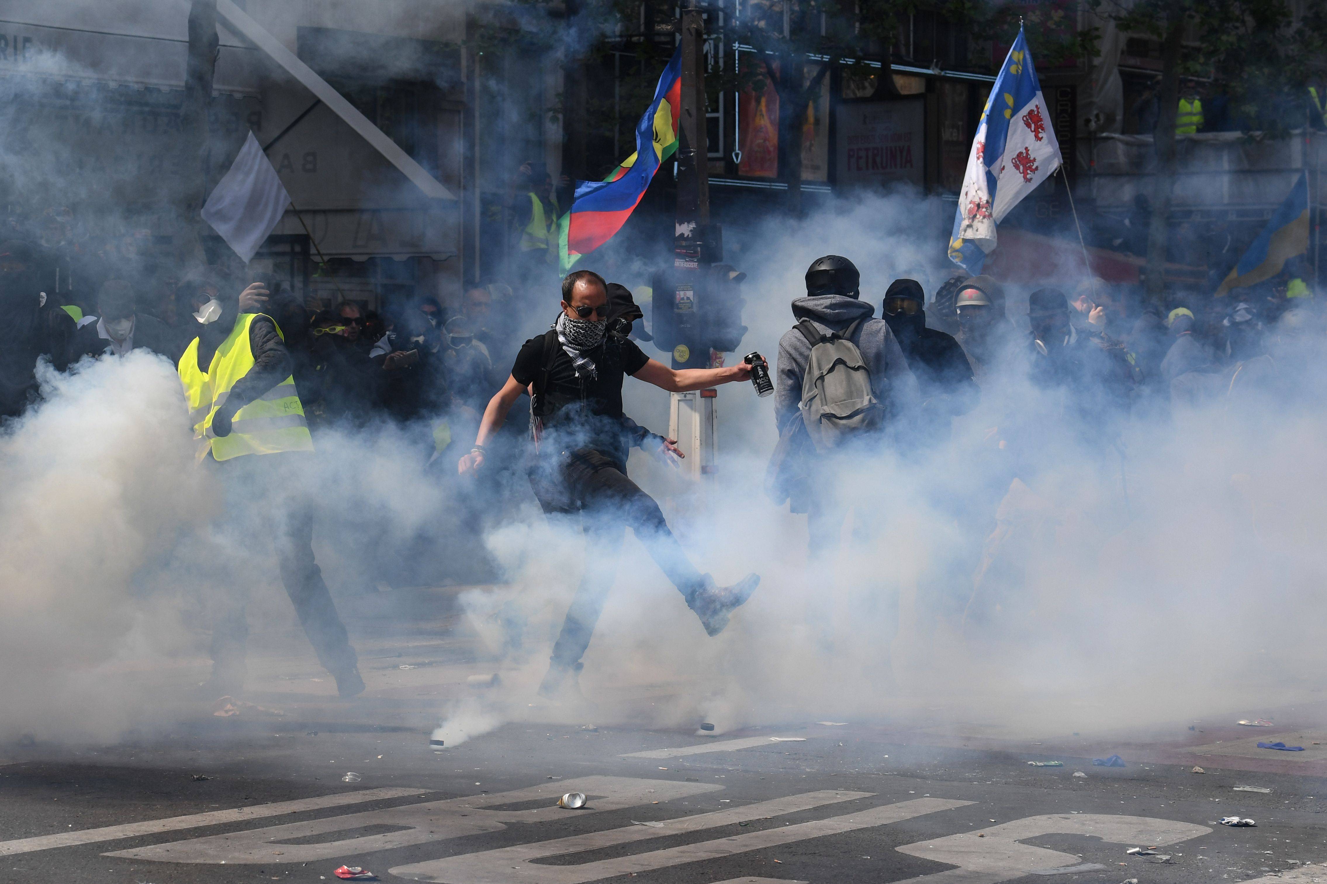 A polícia francesa disparou gás lacrimogêneo para afastar centenas de pessoas que aproveitaram as tradicionais manifestações do dia para protestar contra o presidente Emannuel Macron, durante uma passeata dos coletes amarelos. Os manifestantes reagiram lançando projéteis e, ao menos, uma pessoa ficou ferida.