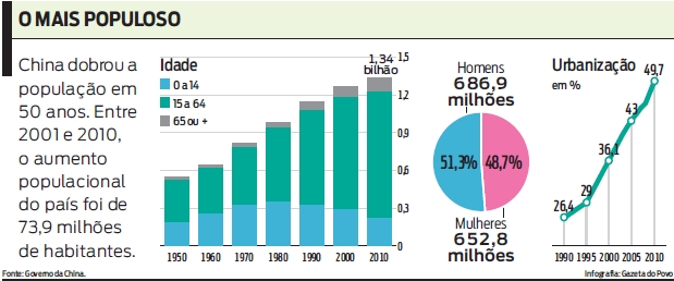 Outro resultado é que metade da população chinesa agora é urbana: 49,7% vive em cidades, 36% a mais que há dez anos, uma marca histórica para o país de longa tradição rural.