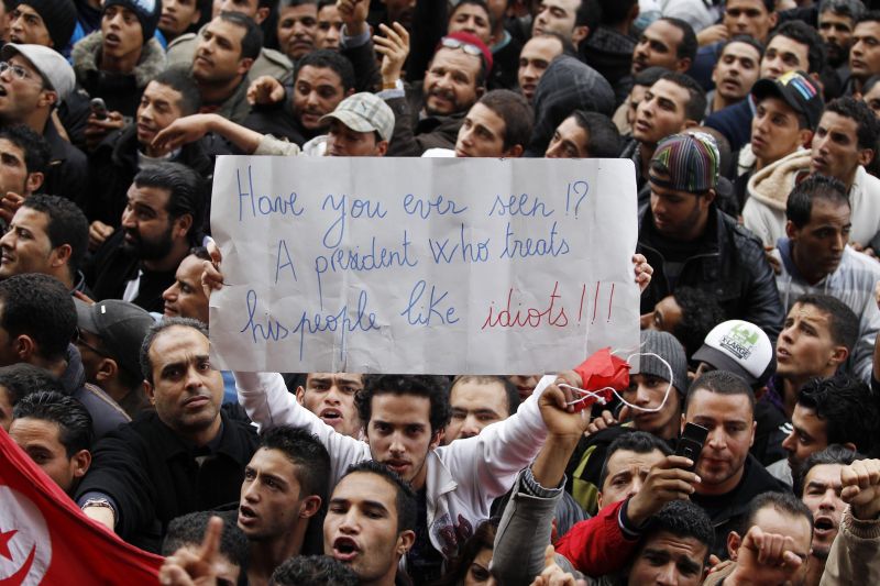 A onda de distúrbios começou quando um desempregado, pós-graduado, se imolou após ter sido impedido pela polícia de vender frutas sem licença. Em poucos dias os protestos se espalharam pelo país, e nesta semana chegaram a Túnis, a capital.