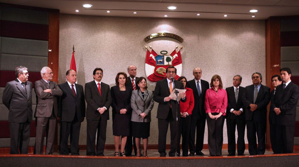 No pronunciamento em que aceitou a renúncia da totalidade de seus ministros, García não falou sobre os novos indicados aos cargos. O presidente elogiou todos os funcionários. "Saúdo o gesto político nobre do gabinete, que optou por renunciar. Este gabinete apresentou sua renúncia para não ser um obstáculo e cumpriu assim com seu desejo patriótico", disse ele, segundo o jornal peruano El Comércio. "A vida me ensinou que dá muitas voltas e as pessoas boas sabem reconhecer as coisas. Sabem quem trabalhou por elas e serviu com grandeza o Peru".