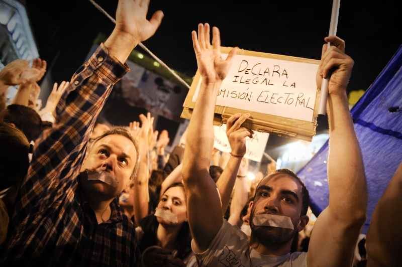 Chamados de "los indignados", os manifestantes encheram as ruas e praças em cidades espanholas em uma onda de protestos contra as medidas de austeridade do governo, marcando uma mudança depois de anos de paciência com um longo declínio econômico.
