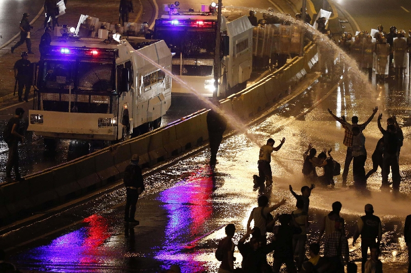 Os agentes usaram bombas de gás lacrimogêneo e canhões de água para afastar os jovens. Em seguida, os manifestantes ocuparam as ruas e praças dos bairros de Altamira e Los Palos Grandes, alguns a pé e outros de moto.