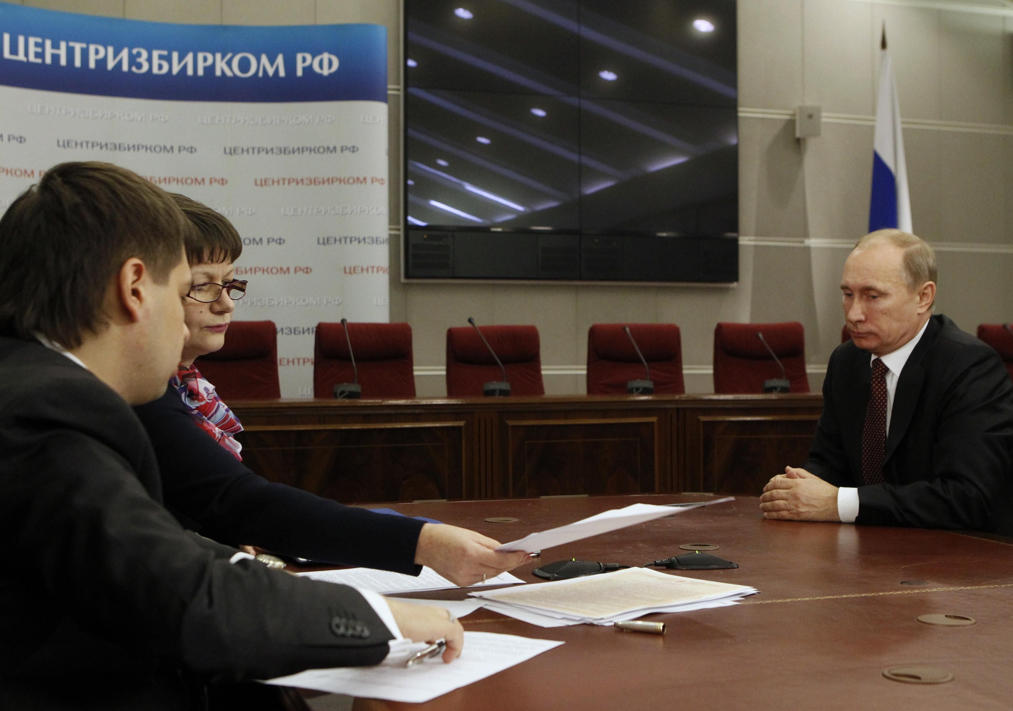 O primeiro-ministro russo, Vladimir Putin, apresentou pessoalmente nesta quarta-feira os documentos necessários para registrar sua candidatura às eleições presidenciais de março de 2012.