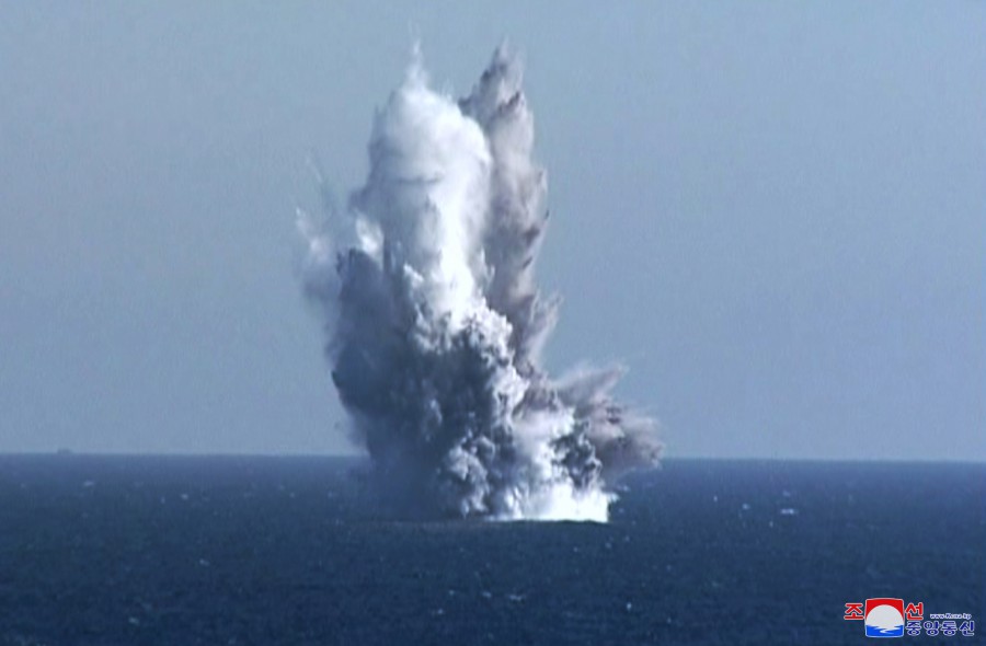 O drone foi lançado da costa nordeste da Coreia do Norte na terça-feira e "atingiu o ponto alvo nas águas da Baía de Hongwon, estabelecido como um porto inimigo simulado, com sua ogiva de teste detonando debaixo d'água na tarde de quinta-feira", detalhou a agência estatal de notícias norte-coreana KCNA.